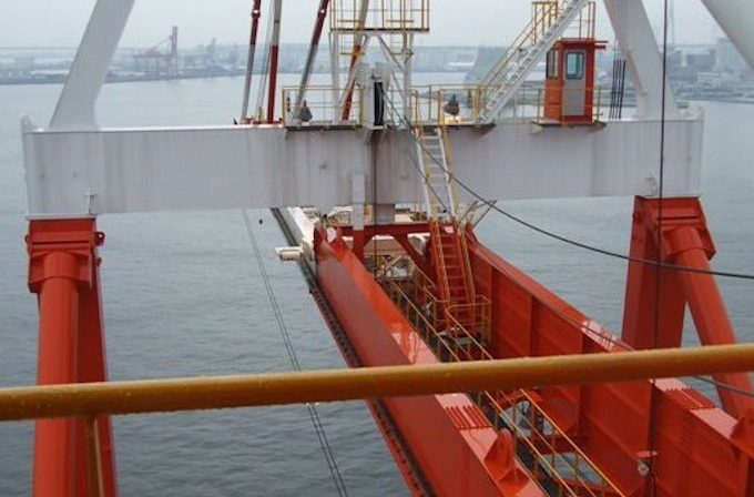 本機械は大型のコンテナクレーンです。ワイアー交換や、巻き上げ機械装置の点検修理も可能です。