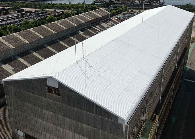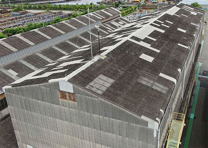 屋根材にアスベスト含有の可能性があるケースでも、事前調査と法令順守を前提に、塗膜で覆う工法を選択肢として提示できる点を訴求。