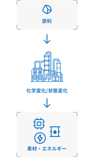 工業製品に不可欠な素材やエネルギーを製造している設備のことです。スマホの半導体や家庭の食用油など、