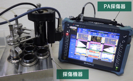 管と管板を接合する管端溶接部は、溶接部の表面など目視可能な範囲を対象とした非破壊検査により溶接欠陥の有無を確認しますが、管端溶接部の内部においても非破壊検査できるフェーズドアレイ超音波探傷検査(PAUT)システム(図1)を開発しました。