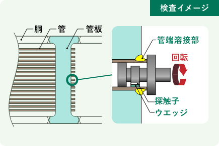 製造時検査では管端溶接部に内在する欠陥の有無と発生位置を報告し、お客様へ納品する熱交換器の品質向上に貢献しています。
