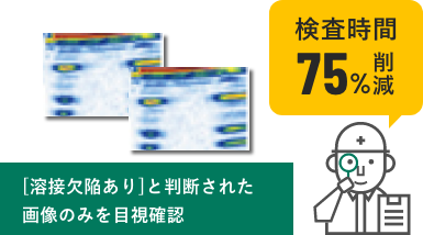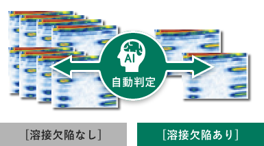 また、取得した探傷データを判定するためにAI(人工知能)技術であるディープラーニングを活用して溶接欠陥の有無を精度良く自動判定(識別)します。