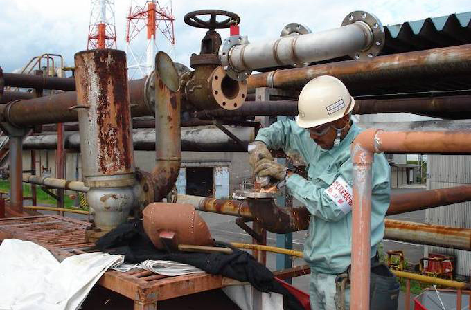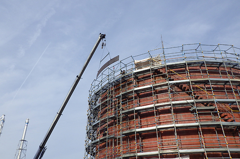 側板腐食調査の結果、最下段上部にあるジャッキアップ用金物の近傍で腐食が判明し、緊急で補修工事を実施。施工計画を繰り返し検討し、溶接管理を実施。危険物保安協会立会検査に合格し、その後の消防による水張検査・完成検査も工期どおりに完了。
